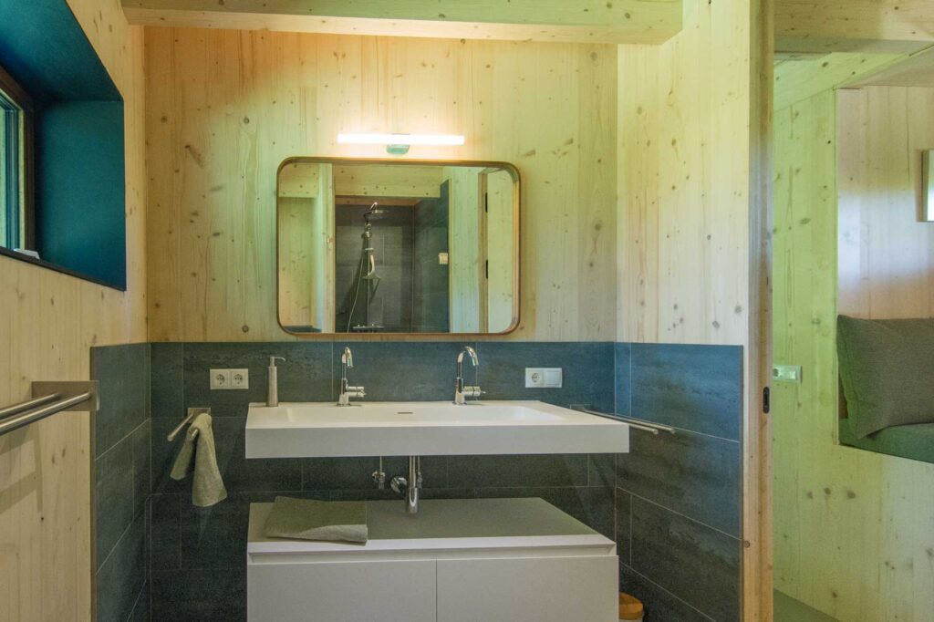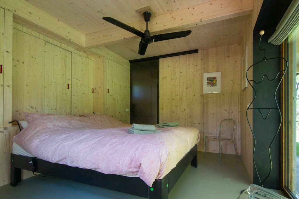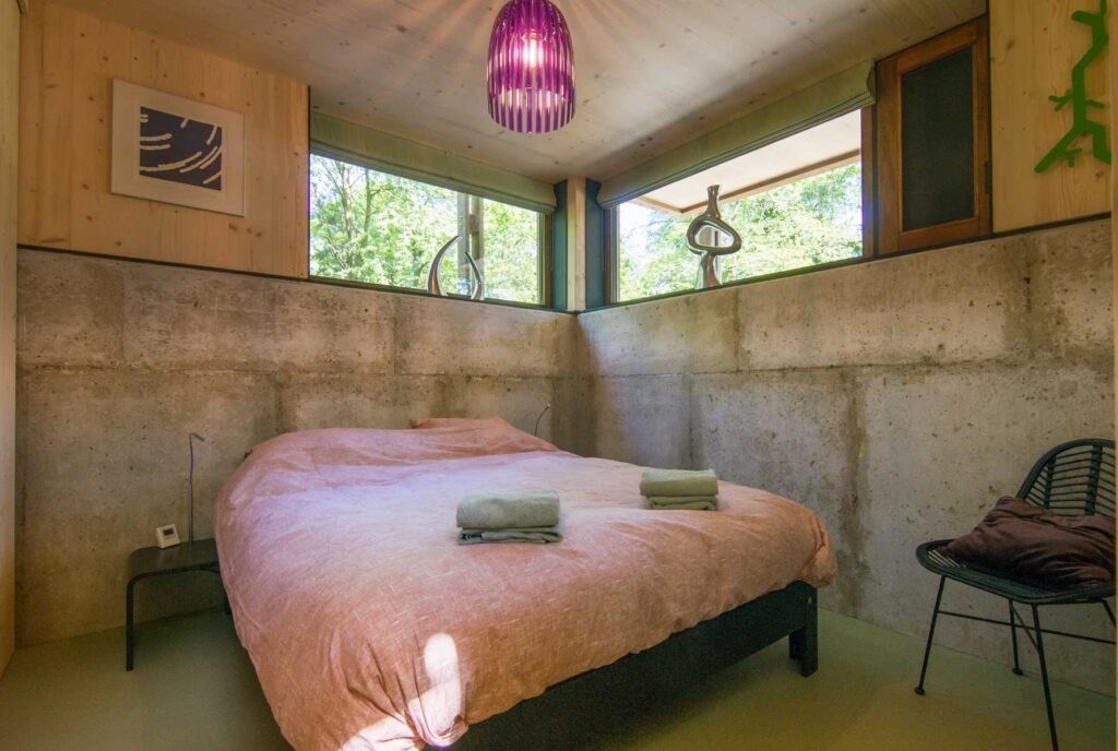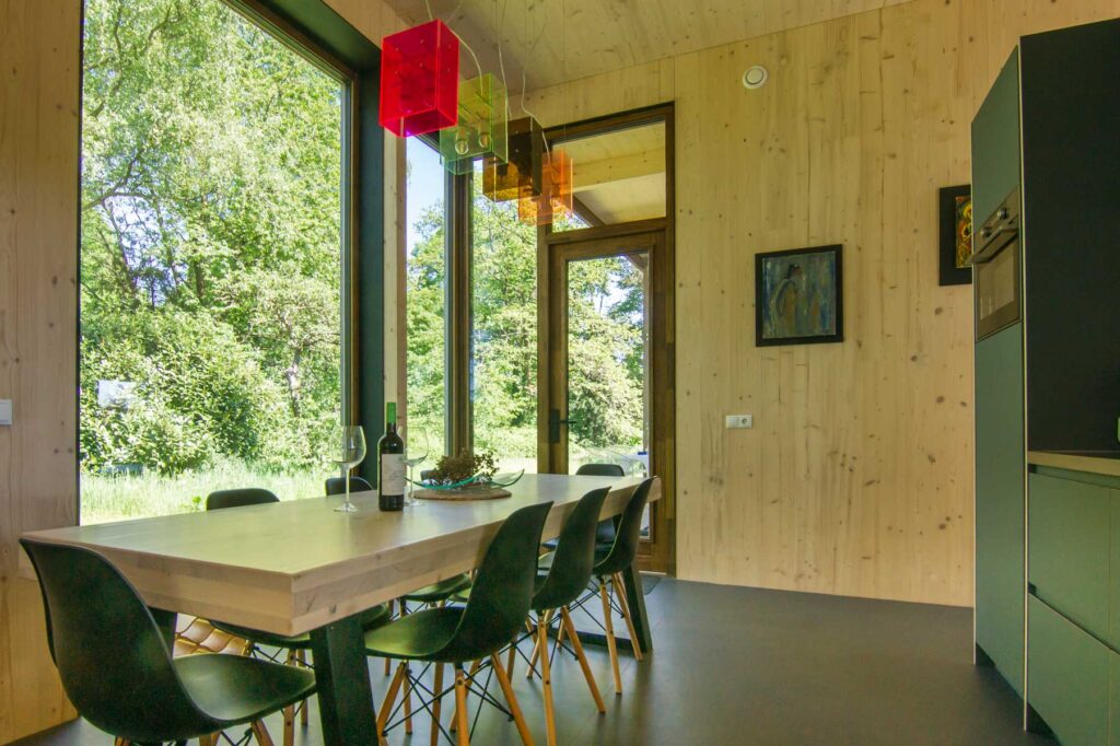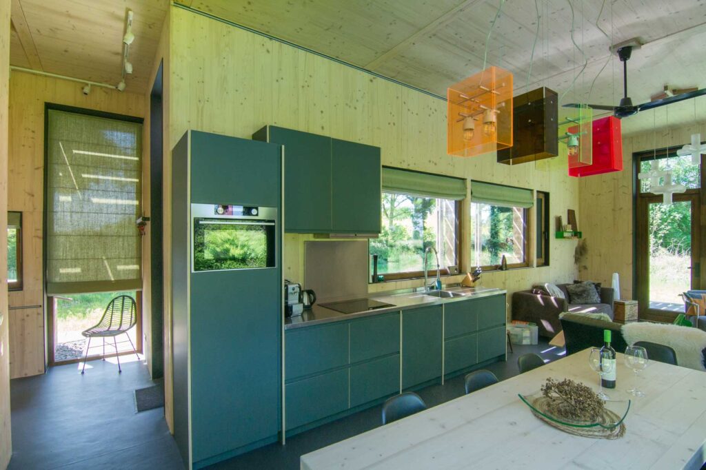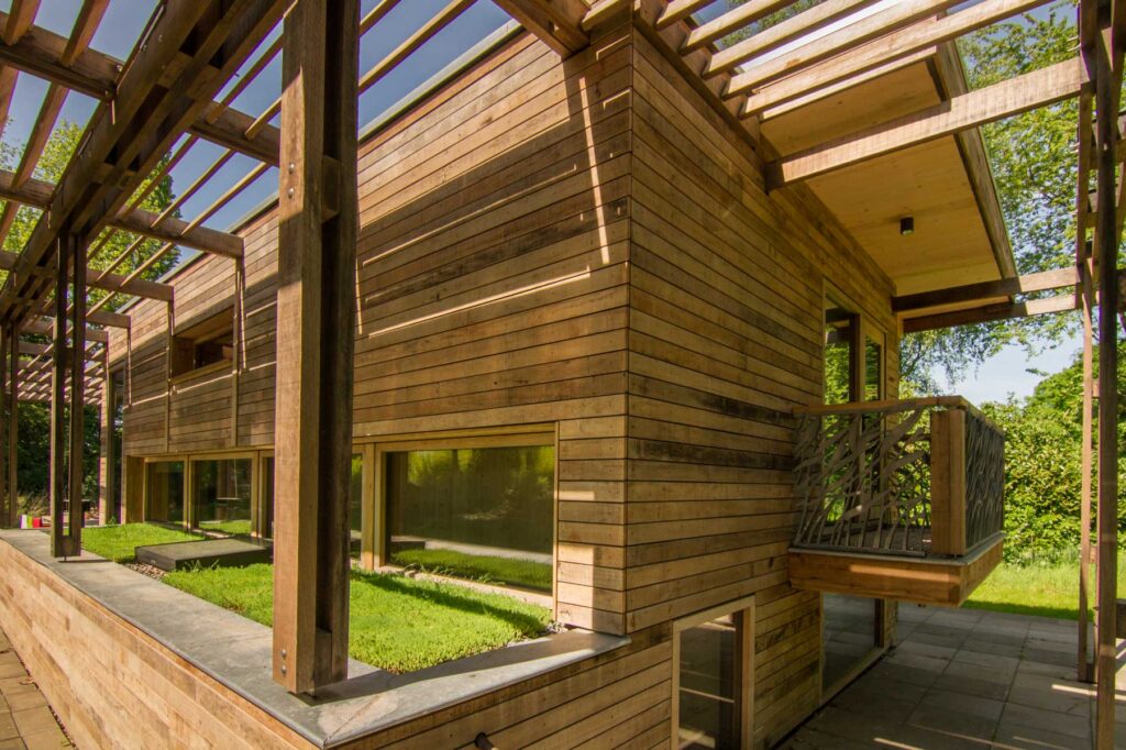 Paviljoen Esch is een stijlvol eco vakantiehuis in Aalten. Paviljoen Esch is biobased en circulair gebouwd. Boven de grond is het paviljoen volledig van hout met nergens een stalen balk. Als één van de eerste woningen in Nederland heeft Paviljoen Esch een kelder en vloer van duurzaam cementloos beton, met een tot 80% lagere CO2-uitstoot. Voor het beton zijn circulaire isolatieplaten gebruikt, van onder een ijsbaan. De constructie is van Duits massief vurenhout, de CLT panelen zijn in een fabriek verlijmd en op maat gezaagd. De wanden zijn geïsoleerd met houtvezels. De kozijnen, gevelplanken en de pergola zijn van ongeschilderd duurzaam fraké hout.