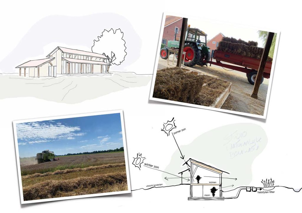 Op het terrein van een kleinschalige zorgboerderij in Aalten verrijst een ecologisch huis van strobalen. De bouw wordt grotendeels verzorgd door de opdrachtgevers zelf, waarbij ze specialisten inhuren voor specifieke onderdelen, en zelfs de kinderen helpen enthousiast mee! Deze benadering van bouwen legt de nadruk op het proces, waarbij het samenwerken en het geleidelijk zien groeien van het huis net zo belangrijk zijn als het uiteindelijke resultaat.